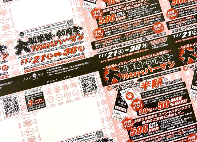 “メンズサワもお陰さまで創業50周年を迎えることができました。