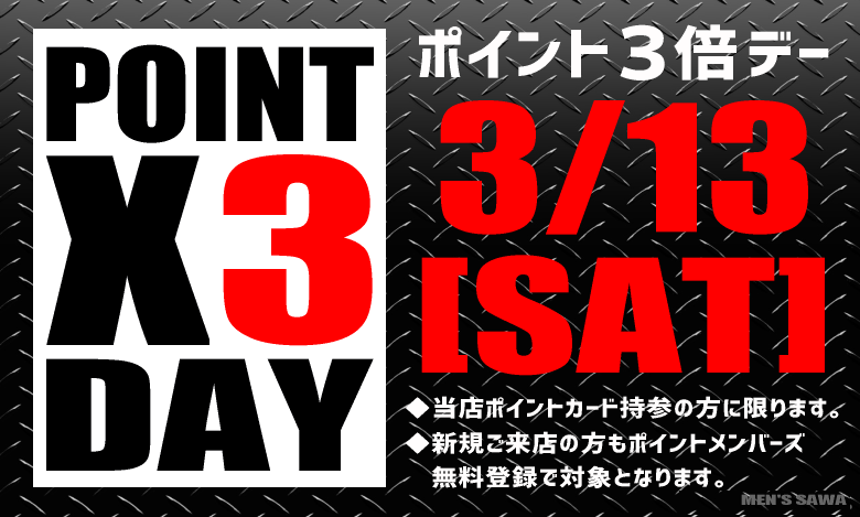明日3/13(土)は毎月恒例の“ポイント3倍デー”です♫