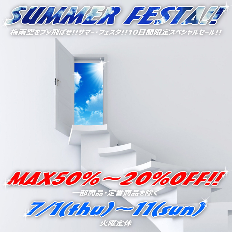大きいサイズの『梅雨空をブッ飛ばせ!!サマー・フェスタ!!10日間限定スペシャルセール!!』開催♫