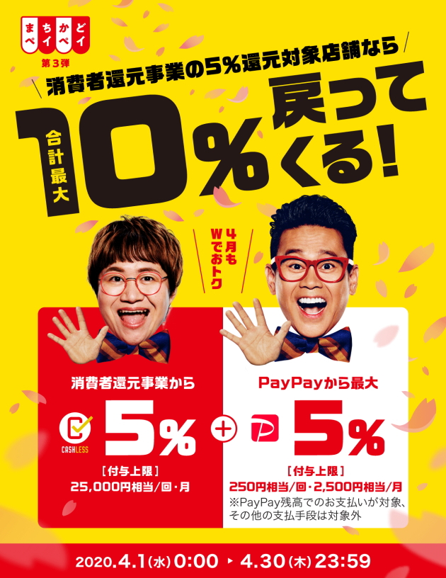 4月も引き続きWでおトクなPayPayをご活用ください(^▽^)ノ"♫