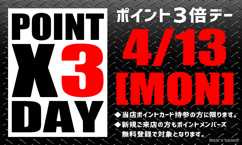 4/13(月)は毎月恒例『ポイント3倍デー!!』