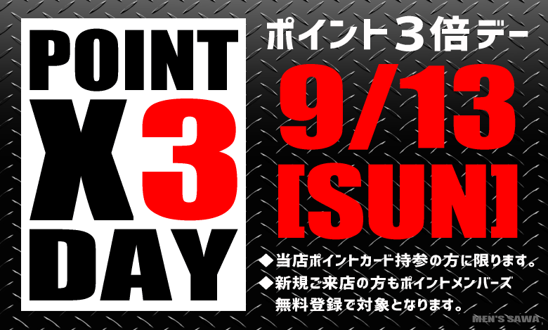 9/13(日)は毎月恒例の“ポイント3倍デー”です♫