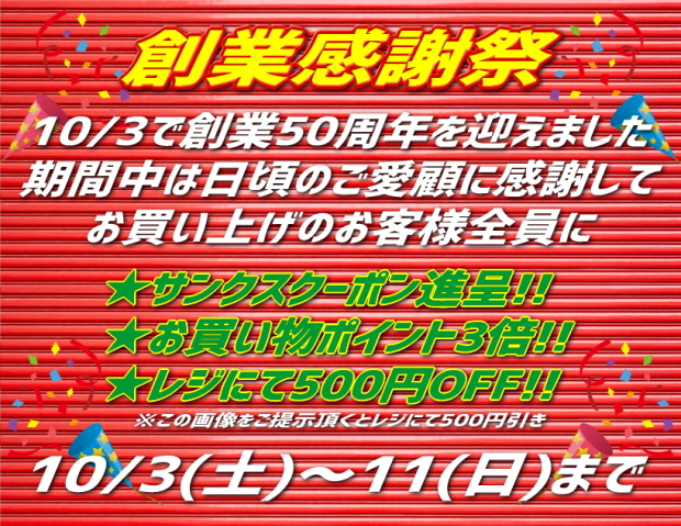 #創業感謝祭 #創業 #50周年 #感謝 #ありがとう #大きいサイズの服専門店 #大きいサイズの店 #大きいサイズメンズ #大きいサイズ #ビッグサイズ #キングサイズ #オーバーサイズ #愛知県 #一宮市 #メンズサワ