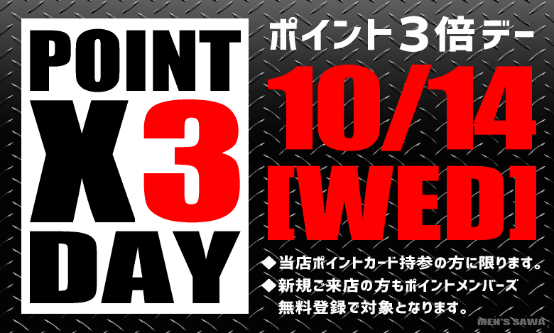 10/14(水)は毎月恒例の“ポイント3倍デー”です♫