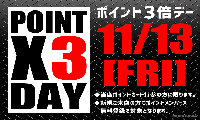 11/13(金)は毎月恒例の“ポイント3倍デー”です♫