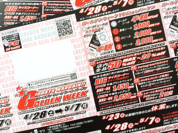 名古屋 大須 大きいサイズ専門店「ビッグサイズストア」3月の定休日