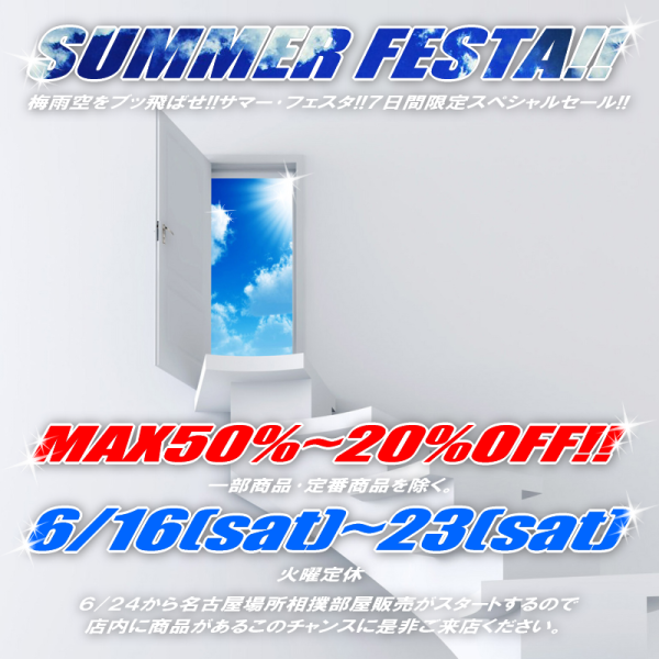 ▷夏物の新作アイテムも目玉商品と共にスペシャル価格で一挙大放出!!