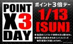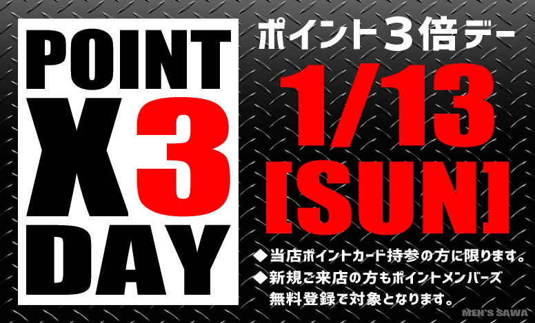 1/13(日)は毎月恒例『ポイント3倍デー!!』