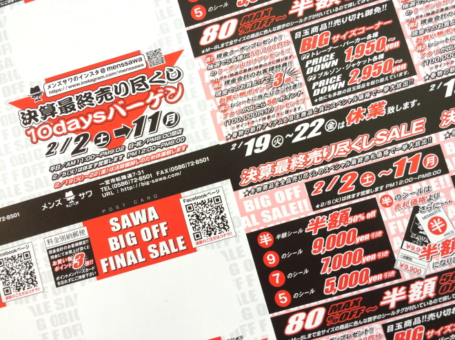 名古屋 大須 大きいサイズ専門店「ビッグサイズストア」2月の定休日 とセールのお知らせ