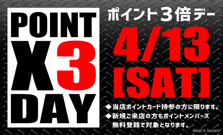 4/13(土)は毎月恒例『ポイント3倍デー!!』