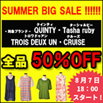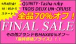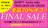 SALE対象ブランドは、QUINTY(クインティ)・Tasha ruby(ターシャルビー)・TROIS DEUX UN(トロワドゥアン)・CRUISE(クルーズ)